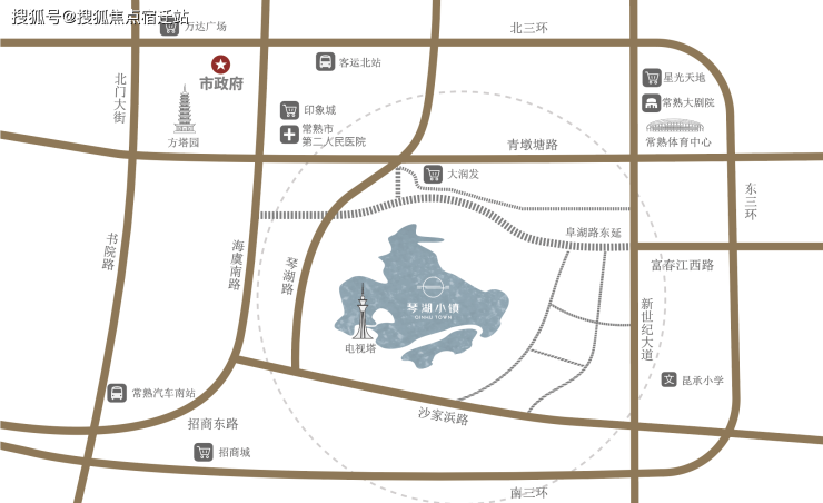 琴湖小镇地处常熟中心,承接新老城区,西眺虞山、尚湖,南邻昆承湖,占据海虞路、新世纪大道两大黄金发展轴,富集醇熟资源。