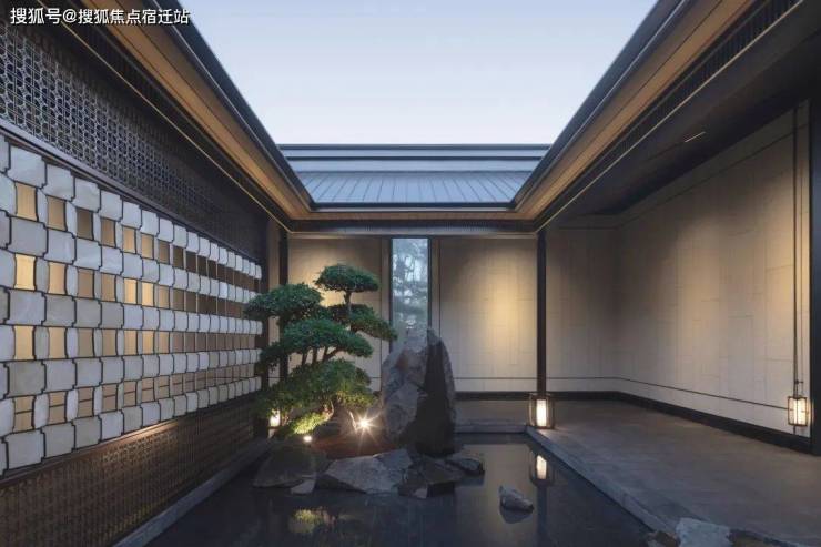 取景于晋庭,遵循古代四合房天井之原型,让雨水可沿建筑挑檐流入天井,滋养绿植,借此寓意“四方之财,水聚天心”。中部的桩头榆树,静静地屹立在府邸的一角,见证着岁月流转,它的绿意盎然,为整个场景增添了一份生机与活力。