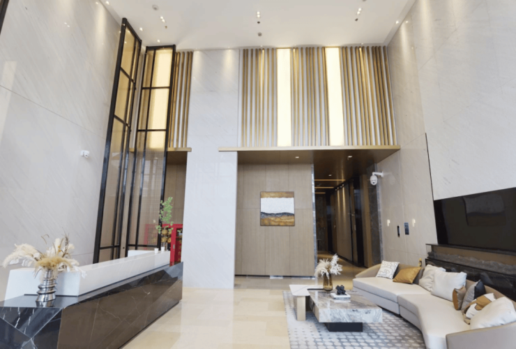 项目总建筑面积14898㎡,地上十层,地下二层,外立面为全幕墙玻璃。一层为商业配套,二至十层为4.78米层高酒店式公寓,公寓单层建筑面积约888㎡,23套/层,其中2-4层现状为毛坯,5-10层高标准精装修,目前精装修已施工完成并交付。所有房型均为跃层酒店式公寓,主要有29㎡跃层小总价,39㎡双钥匙高回报,55㎡双层景观房。