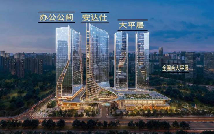 项目总建筑面积26.05万平方米,由4栋140米塔楼簇拥奥体公园的优美景观,形成欢迎的态势,邀国内外游客共襄盛举。其中T1、T2为珍品公寓、T3为酒店(安达仕酒店)、T4为办公楼。由会议中心、酒店宴会厅、商业、艺术中心及社区配套组成的基底。