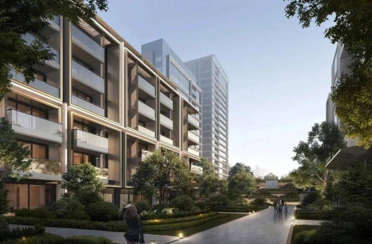 高层建筑采用现代格构体系设计,通过仿石铝板与玻璃的虚实搭配,选用高级灰与大地色系,质感沉稳内敛。叠墅延续蒙德里安格构手法,强化竖向构图与独户体验,设置层层退台及进深2.4-3米进深露台,拓展生活场景,也可打造屋顶花园。