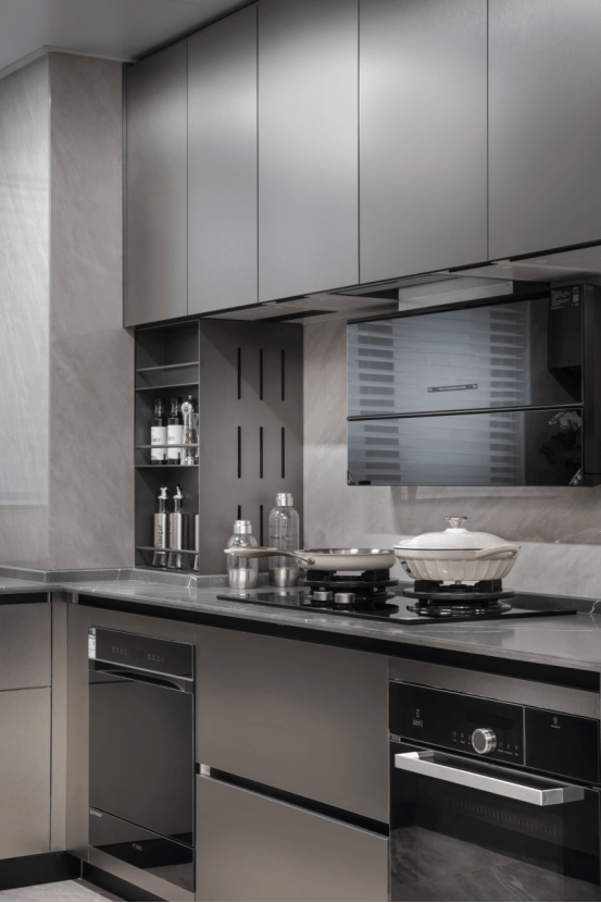 水槽采用的是铂浪高不锈钢大单盆:配合抽拉式水龙头,轻松洗刷。底下安装了末端净水康丽根或同等品牌。