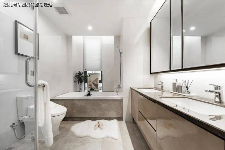 奢装配置尺度感及景观面极强,富有仪式感的双台盆布局、独立且艺术化的镜柜形态,结合背景纹理感较强的石材,配合局部灯光的点缀营造独特的生活品质体验。而为到访客人准备的客卧,功能一应俱全。主色调上,米色为主导,橙色为点缀,是空间的延续、色彩的流淌。