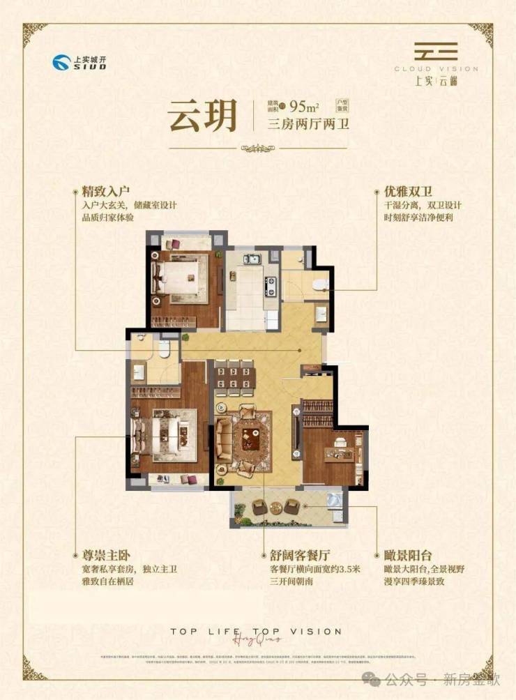 项目目前只剩95㎡的三房两厅两卫户型在售,95㎡的户型宽适,尺度感完全不输市面上百余平的三房户型。