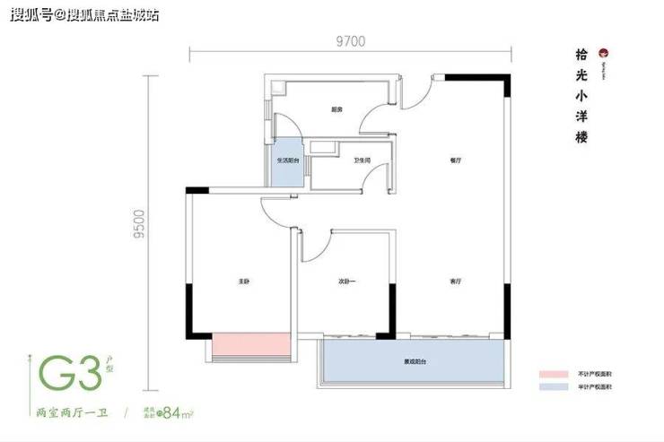 建面约84㎡户型,两室两厅一卫设计,一字型设计厨房,动线布局科学实用,餐客厅一体空间使就餐、娱乐空间显得更加开阔,可扩容更多生活空间,且双卧朝南,明亮通透,主卧设计独立衣帽间,设有约2.4米面宽飘窗。