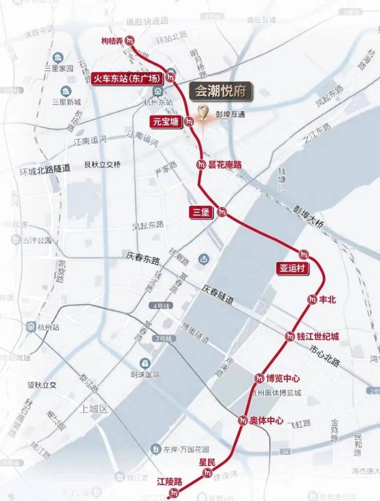 近杭州东站(日均38万人次客流)+4条地铁环绕,人潮即钱潮,租金收益有保障(周边商铺租金7-10元/天/㎡)。地铁1/4/6/19号线四轨环绕,距6号线元宝塘站仅270米(步行5分钟),1站到东站,2站到江河汇,3站到亚运村;19号线为机场快线,可换乘12条地铁线路。