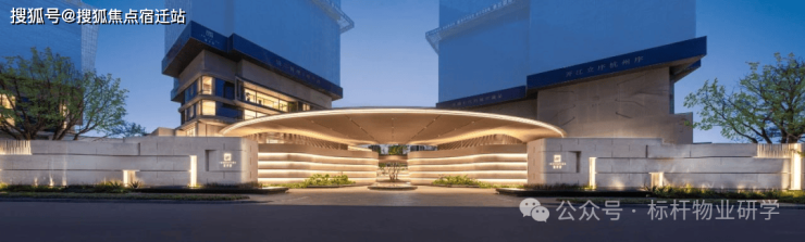 杭序府的外立面采用弧线转角阳台+蓝灰色钢化LOW-E玻璃,公建化立面拥有超高窗墙比。同时,大量曲线元素的运用,不仅造价昂贵,而且极具辨识度,成为区域的颜值担当。