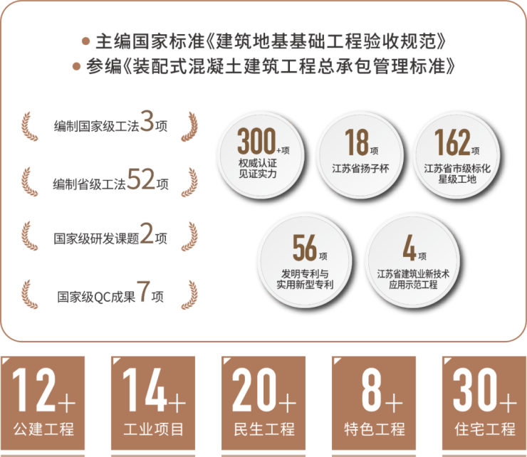 嘉盛集团22载深耕苏州,国家特级资质,主编制国家标准《建筑地基基础工程验收规范》参编《装配式混凝土建筑工程总承包管理标准》,缔造苏州湾广场、吴中国太大厦等地标,300+荣誉印证“中国好房子标准制定者”实力!(数据来源嘉盛官网)