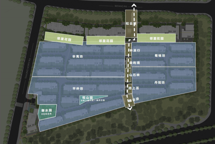 萃取沧浪亭、留园、耦园、拙政园、可园林韵,以一轴·两园·四坊格局,精植四季花木,营构四重花园秘境,再现移步换景的苏式诗境。