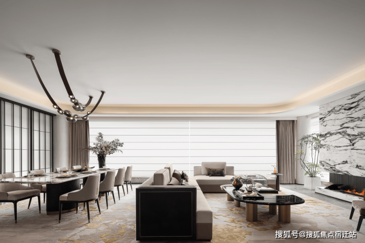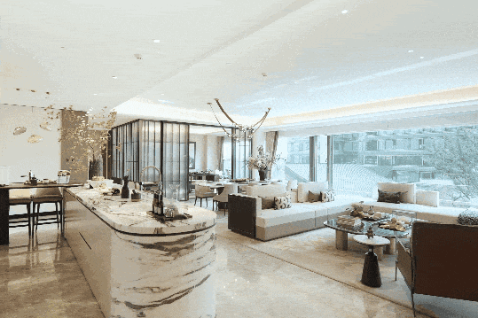 户户均可享受环幕景观视野,大面玻璃窗与金属线条的运用,让会客空间更显通透轻盈。