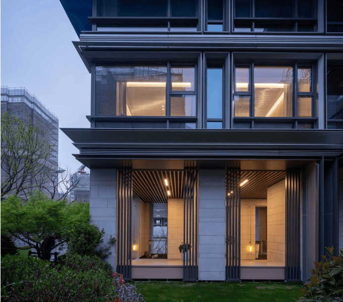 建筑立面方面,新杨思上园采用铝板搭配金属线条与涂料的组合,通过框镜设计手法勾勒出复杂的线条层次,加上架空层的运用,使得建筑的整体颜值与气质优势尽显!