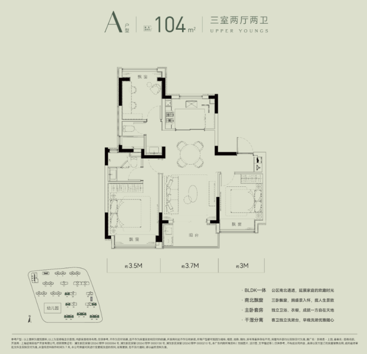 最后,一起来看新杨思上园的此次四期推出的收官产品线:建面约104㎡3房2厅2卫户型,该户型规划有A\B两款设计,为改善人群提供更多样的选择!