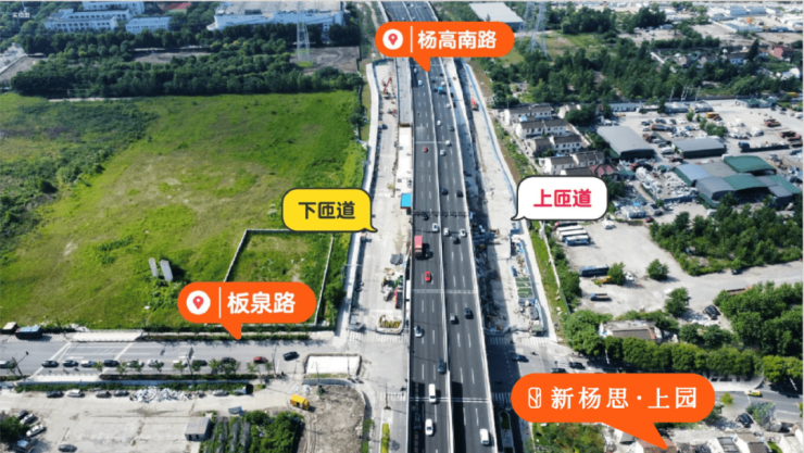 视角放大到整个新杨思,杨高南路高架板泉路匝道已经通车!