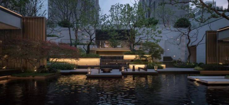 再到社区内院,视觉呈现更令人惊艳!核心景观设计转译自苏州园林艺圃设计语言,取意“山、林、园、趣”,结合下沉式会所与中央水景、亲水平台、立体花园间的高度落差,巧妙勾勒出一副层层绿意、起伏叠瀑的绝美错落景致!立体多维的花园设计,无论视觉效果还是功能兑现都堪称大师级的水准!