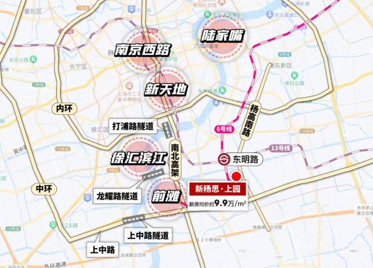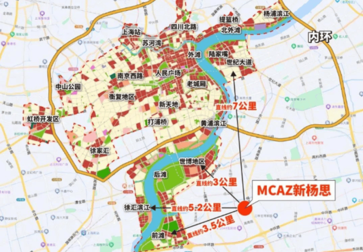 能够有如此高的起点,也得益于新杨思所处地理位置的先天优势!地处内中环的新杨思在区位上几乎处于浦东正核心!在物理层面就与上海几大核心CAZ毗邻!与世博、前滩的直线距离都仅3公里左右!直线距离5公里左右与徐汇滨江隔江相望!即便浦东最远的陆家嘴直线距离也仅7公里之遥!