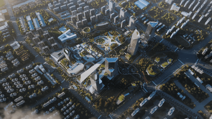 其中,日本设计为新杨思区域提出了一个超前规划理念:Double POD (Park Oriented Development + Pedestrian Oriented Development),即以生态公园为导向+以城市漫步为导向的城市开发模式!其设计重点为中央绿心与商业中心双核联动!