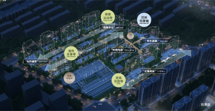 近200米的景观中轴串联起三大主题带!
