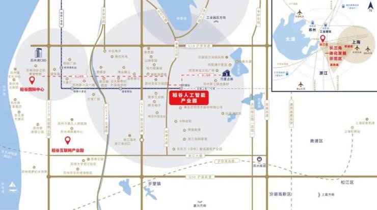 其他:离国家5A级景区、世界文化遗产——同里古镇仅3.5公里,古镇周边商业配套完善,是距项目最近的商业中心;距离吴江人民广场及苏州湾东商圈较近,坐地铁十五分钟可达。产业园周边住宅有叶泽湖花苑、山湖花园等,距离吴江京东方医院仅1.5公里。同时,园区附近有同里湖大酒店和海悦大酒店两个五星级酒店,可以满足商务接待需求。