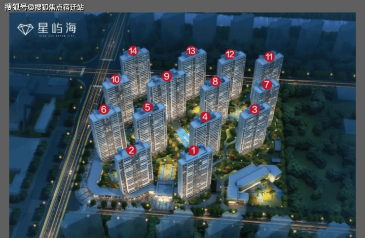 【项目概况】:星屿海项目占地约76.98亩,总建筑面积约21万方,共14幢高层,总户数1389套。