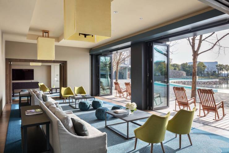 音昱水中天位于上海以西的苏州近郊,依偎于宁静的阳澄湖半岛,坐拥澄澈湖景,占地18.9万平方米。由Tsao & McKown建筑事务所担纲设计,总投资35个亿,是一处以融贯东方智慧与西方科学的正念生活体系,打造的一处大型身心养生憩所。