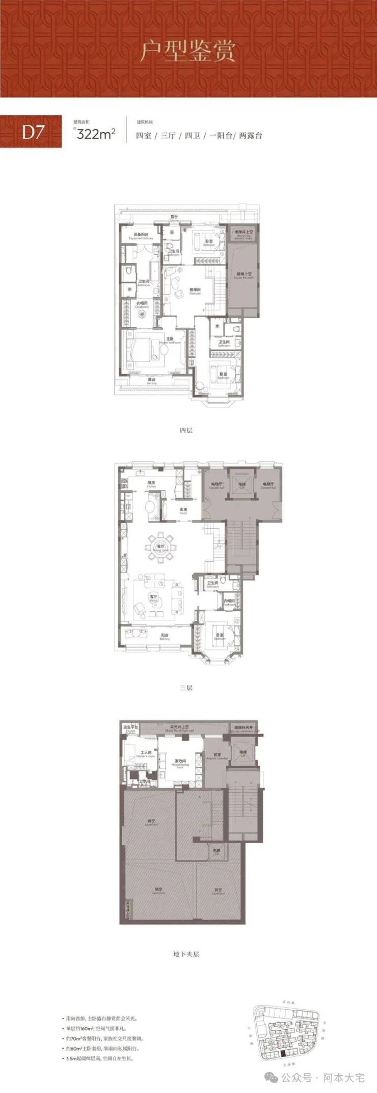 奢阔室内空间:单层超160㎡,客餐厅约60㎡、主卧约60㎡贯通式设计,全套房布局,各成员私密舒适。