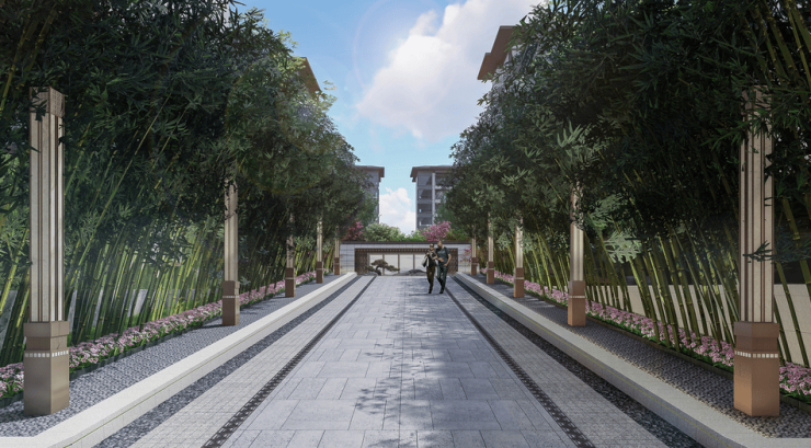 山水文苑项目整体景观形成特有的“五重礼序、七境府苑”的造园手法。通过王府式大门、迎宾礼序轴庭、全龄活动场地、五进式礼序空间,入户花园般的归家体验这五重式礼序的空间营造中国门第礼制的精致大宅。