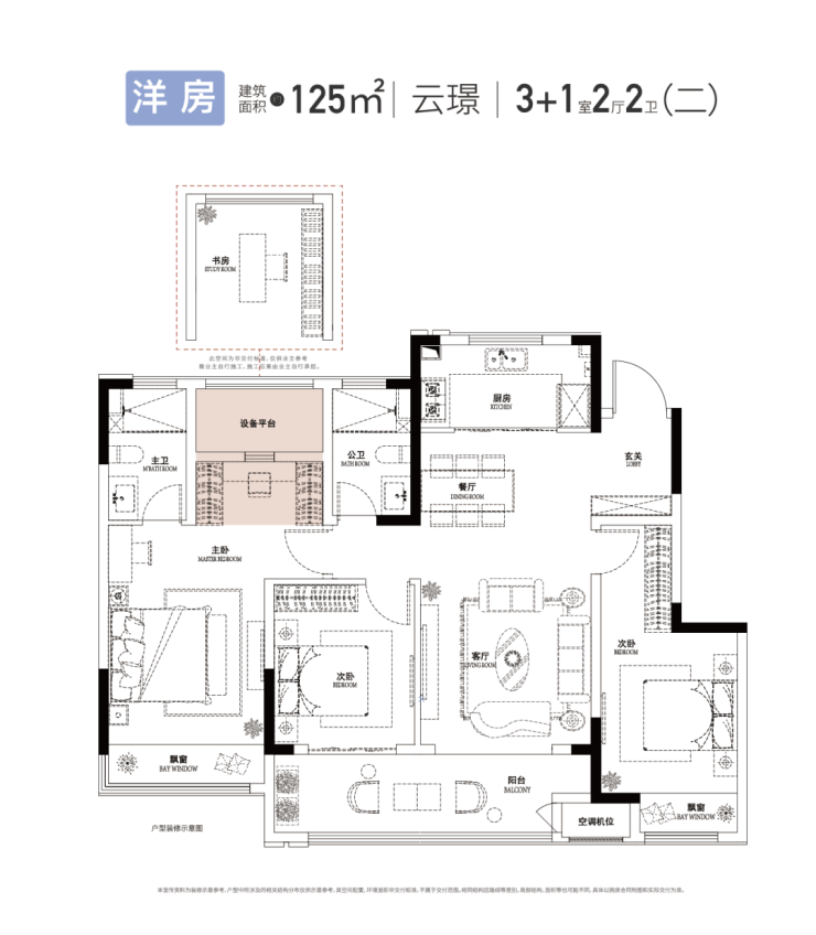 交付标准:毛坯交付,部分户型赠送设备平台面积,可灵活改造为房间或功能区。