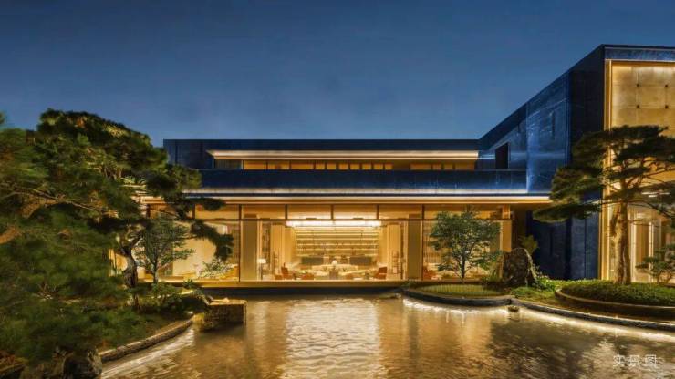 以现代技法的精简流畅,展现传统建筑的文化精髓。大面积玻璃局部点缀奢石,流露古朴隐奢的东方气韵,更彰显居者的广阔襟怀。