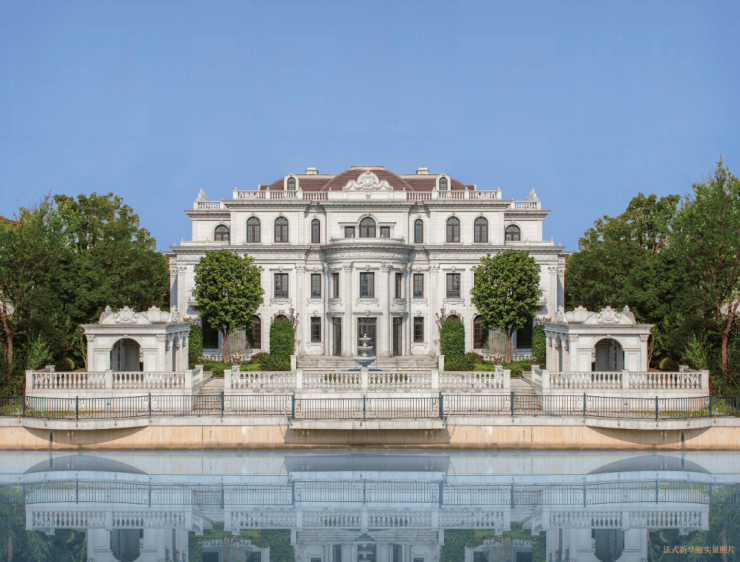 纯天然石材外立面、五十年原生树木,打造经典的欧式皇家园林景观