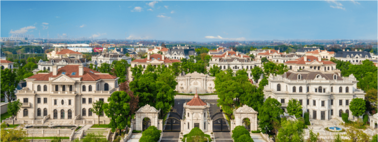 上海庄园占地约131399㎡,总建筑面积约79000㎡,容积率仅为0.45,整个庄园由36栋独栋欧式风格建筑群组成,平均每栋建筑面积2200㎡,真正做到了“五亩一庄园”的企业行宫标准。