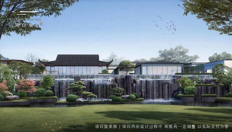 另外在项目中心位置,湖印宸山更是打造了一个近3000㎡生活艺术馆,其规划4个主题馆均位于一道约4米高、约40米宽的飞流叠瀑之上,包含了茶室、会客厅、私宴厅、健身房等。
