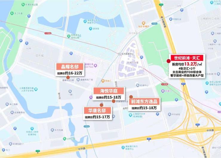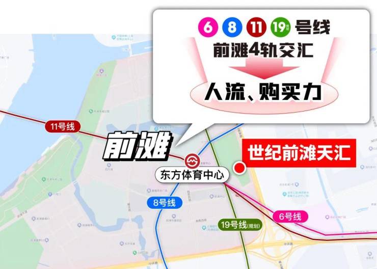 6/8/11号线以及规划19号线几乎将前滩的客户触角延伸到上海各个角落,来自传统市中心、徐家汇、虹口、杨浦甚至紫竹等地的购买力都能通过地铁汇聚在前滩。