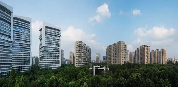 整个社区都是绿色森林,树海环抱,连底层都挑空6~9米,种植绿色,让每户人家都能“开窗见树”,让房子生长在森林之上。