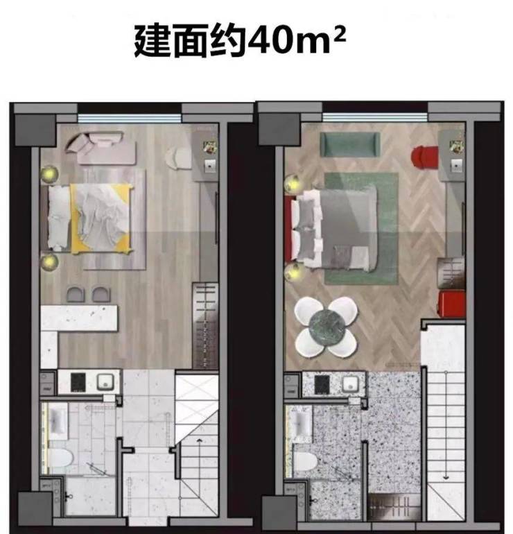 双入户,顾名思义就是把一套产品,设计成上下独立的两处空间,各自配备独立的功能分区,打破常规的产品理念,尽情发挥对空间的想象力。