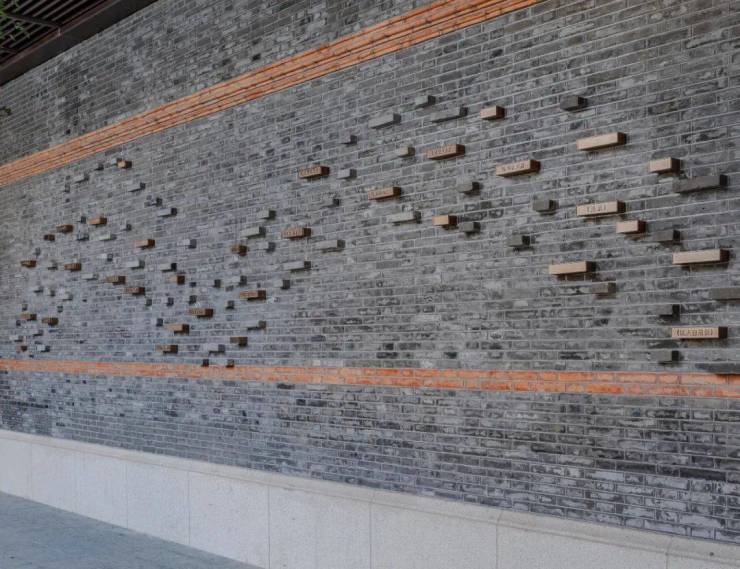 他们专门调制了五种不同颜色的红砖与灰砖,交错出独特的韵律感,仿佛是将岁月砌进墙中。
