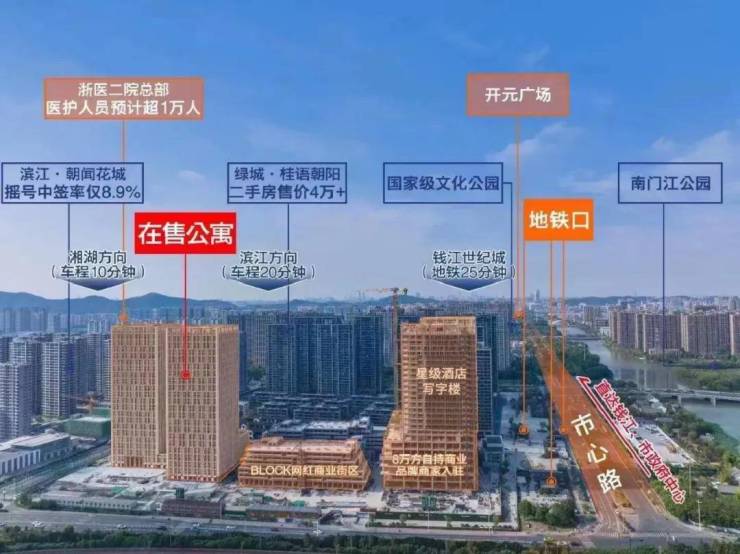 、景观:东侧一路之隔南门江沿河景观,西3公里国家4A风景区湘湖,杭州乐园极地海洋公园等