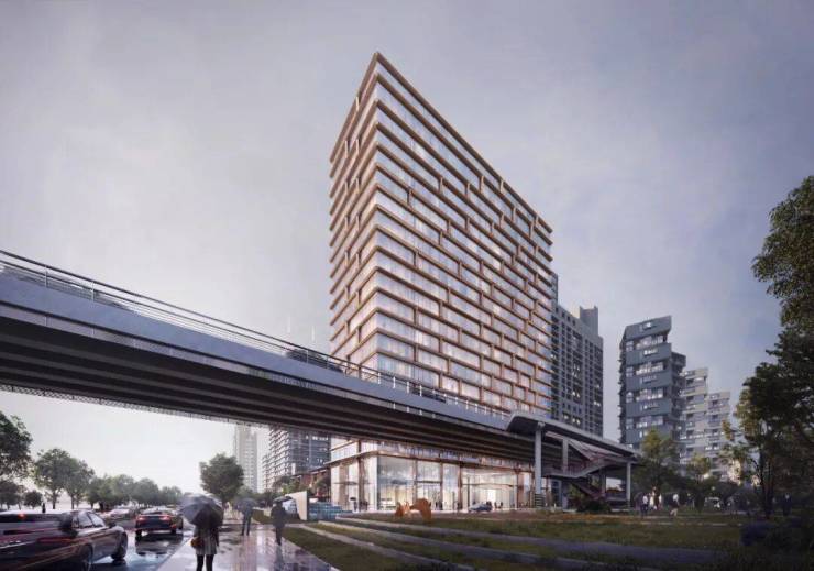 line+以钱塘江为设计思考的起点,建立起由统一的立面肌理单元组成的建筑语言,使建筑形象以指数附加的产品力呈现。