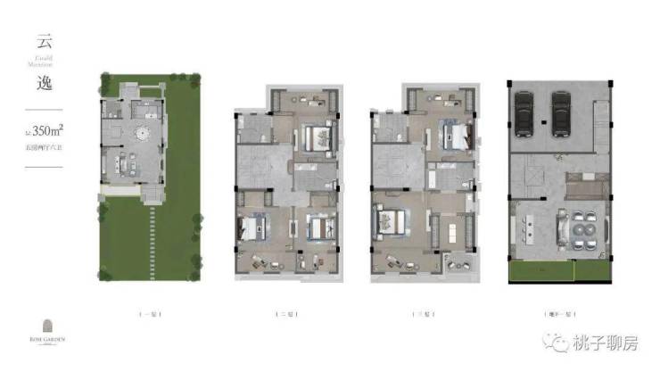 法式经典美学:石材干挂立面、对称几何造型,前庭后院(花园最大450㎡)、私家车库及地下室入户。