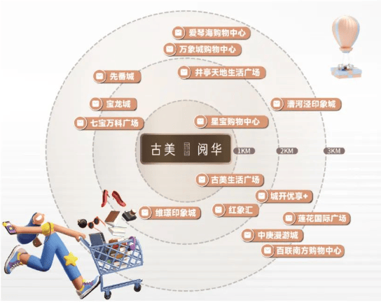 商业:周边有万象城、爱琴海购物广场、七宝万科城市广场、凯德龙之梦、南方商城、中庚漫游城等繁盛商场。