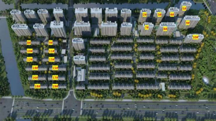 整体容积率约2.0,社区整体为现代风格建筑,打造“一街两轴两环四庭六园十一巷”的景观布局。