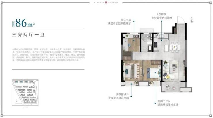 约86平3房样板间▼