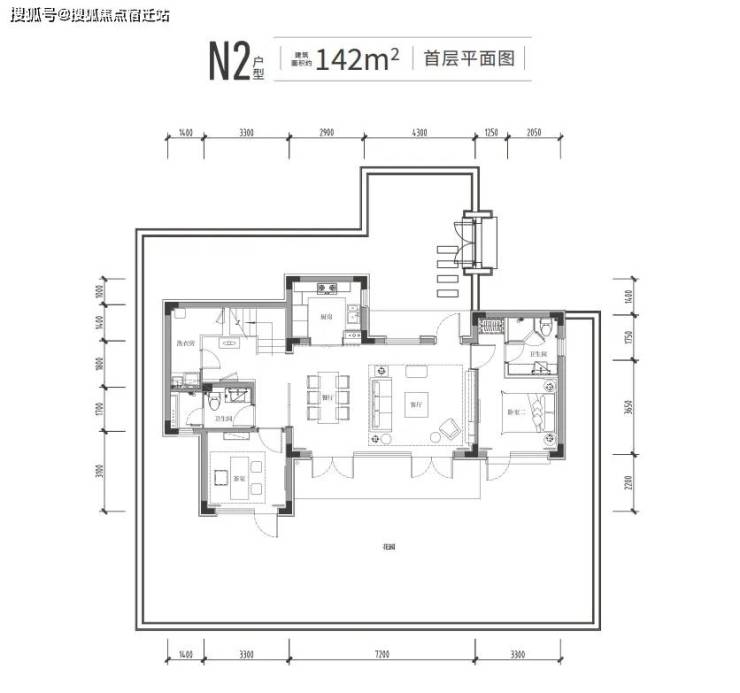 142㎡户型为例,面宽约15.2米,标准4房4卫。一楼是约7.2米长的双面采光大横厅,除了老人套房,还有个向院子伸出的“X空间”。它既能用作茶室、棋牌房,也能成为私密的客卧。拥有两个套房,主卧还是带南向独立衣帽间+带浴缸卫生间+露台“满配套房”!无论采光还是实用性,都碾压普通合院。