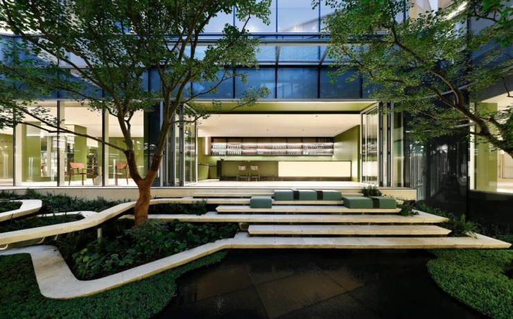 西区的会所还做了一个流动美术馆,不定期策展,将艺术审美融入到日常生活。设计师还运用了许多层层叠叠的台地造景,营造出新加坡式充满生机的立体花园。进一步提升了业主的生活品质。