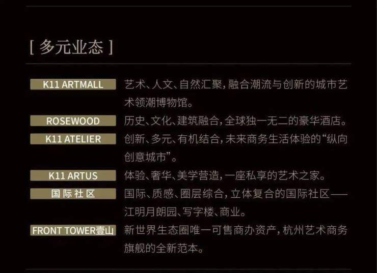 K11将艺术、人文、自然三大品牌理念融合共建。杭州项目打造建面约 7.7万方艺术博物馆,文化广场计划打造“全中国第一个室外的音乐交响厅”,让艺术成为商业的一部分,做城市艺术的领潮者。
