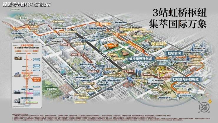 与大虹桥-重固向前进程共振,烫金示范区线在重固设站,距离项目约600米,3站虹桥枢纽、5站华为基地、7站张江,一线串联高能级科创产业高地、长三角一体化示范区等城市重要发展节点,途径科创总值突破千亿级。(信息来源:上海地铁示范区线站点线路图、新华社)