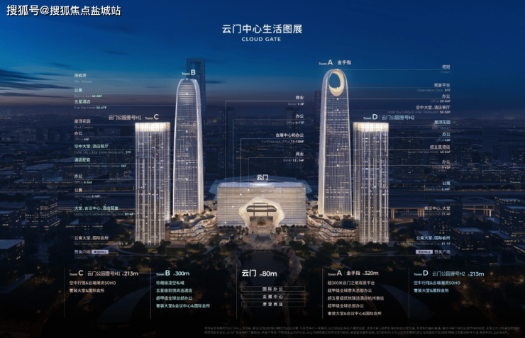 云门中心四塔楼均已突破200米
