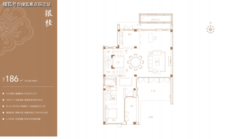 房屋实际可用面积要比户型图标注面积大一些,以“丹桂”户型为例,户型图标注的建筑面积为185m²,但是层高达到9.9m,未来完全可以搭建二层,搭建后,地上使用面积可以达到约280m²左右。