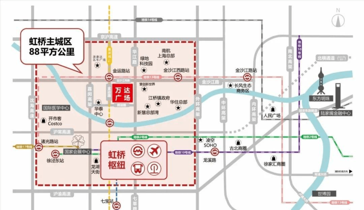 2⃣:区位优势:虹桥主城区内,企业总部聚集地。北虹桥核心位置。项目周边200米内未来5⃣0⃣+企业总部。