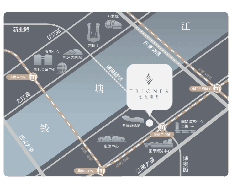 当站在七星潮鸣,才能真正拥有杭州的城市精华所在,窗外,是钱塘江潮的奔流不息,杭州中轴一江两岸“日月同辉”的无际恒景,远处是西湖云山的延绵诗意。近处是奥体中心大小“莲花碗”在怀,杭州国际博览中心“国山”在侧,远见钱江世纪城CBD的天幕盛景。