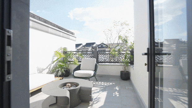 点睛之笔是露台,当明月高悬、星光点点,露台上的灯光与月光交相辉映营造出一种温馨而浪漫的氛围。在这样的夜晚与朋友们畅谈人生、分享故事,无疑是一种难得的体验。
